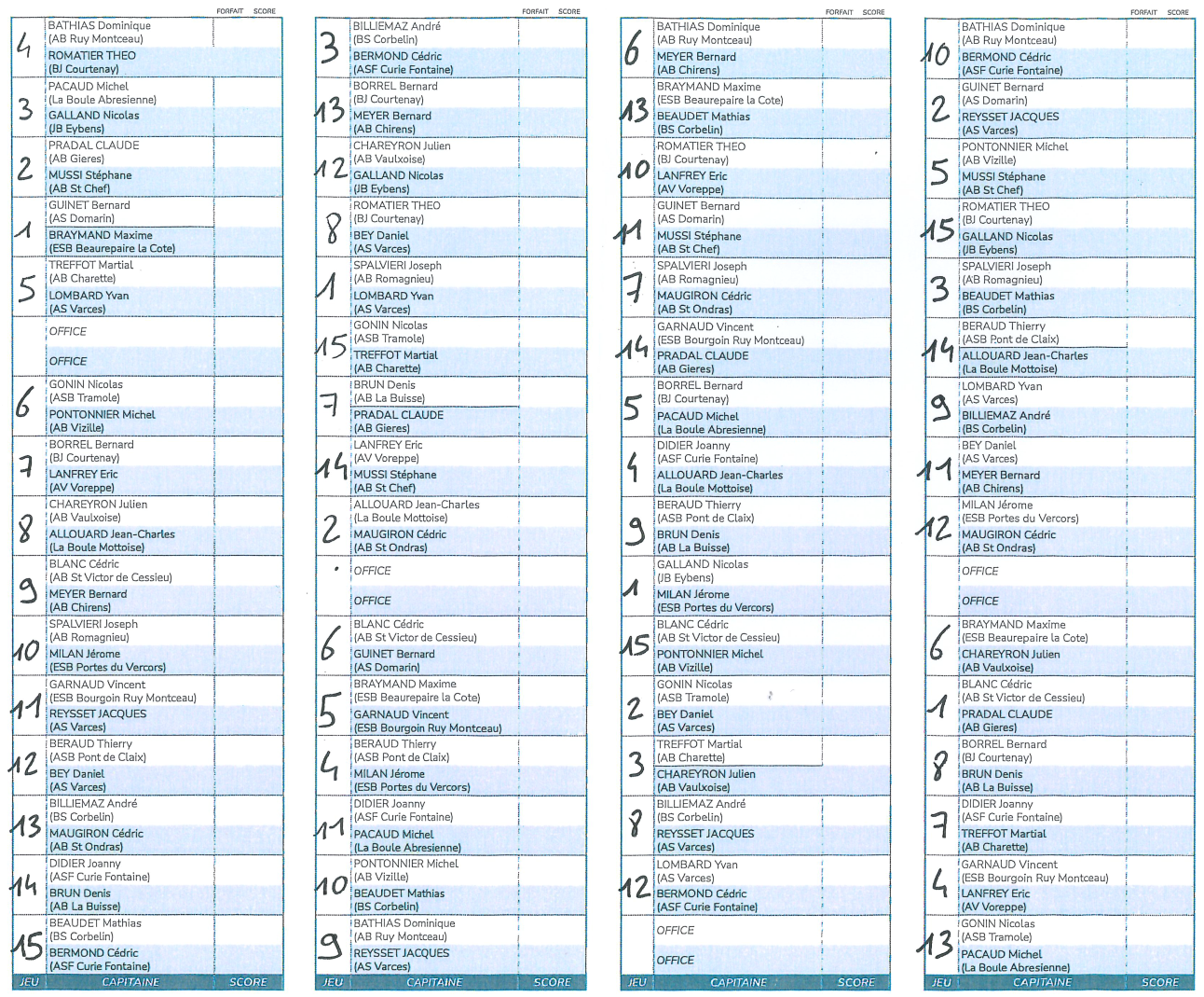 Pour la finale du complémentaire, nous avons assisté à la victoire de l’équipe de Sillans composée par Bernard-Jacquet Geneviève / Guy Cathy contre l’équipe de la Côte Saint-André composée par Gouilloud Sylviane et Bianzani Sandrine sur le score de 13 à 6, félicitations.
