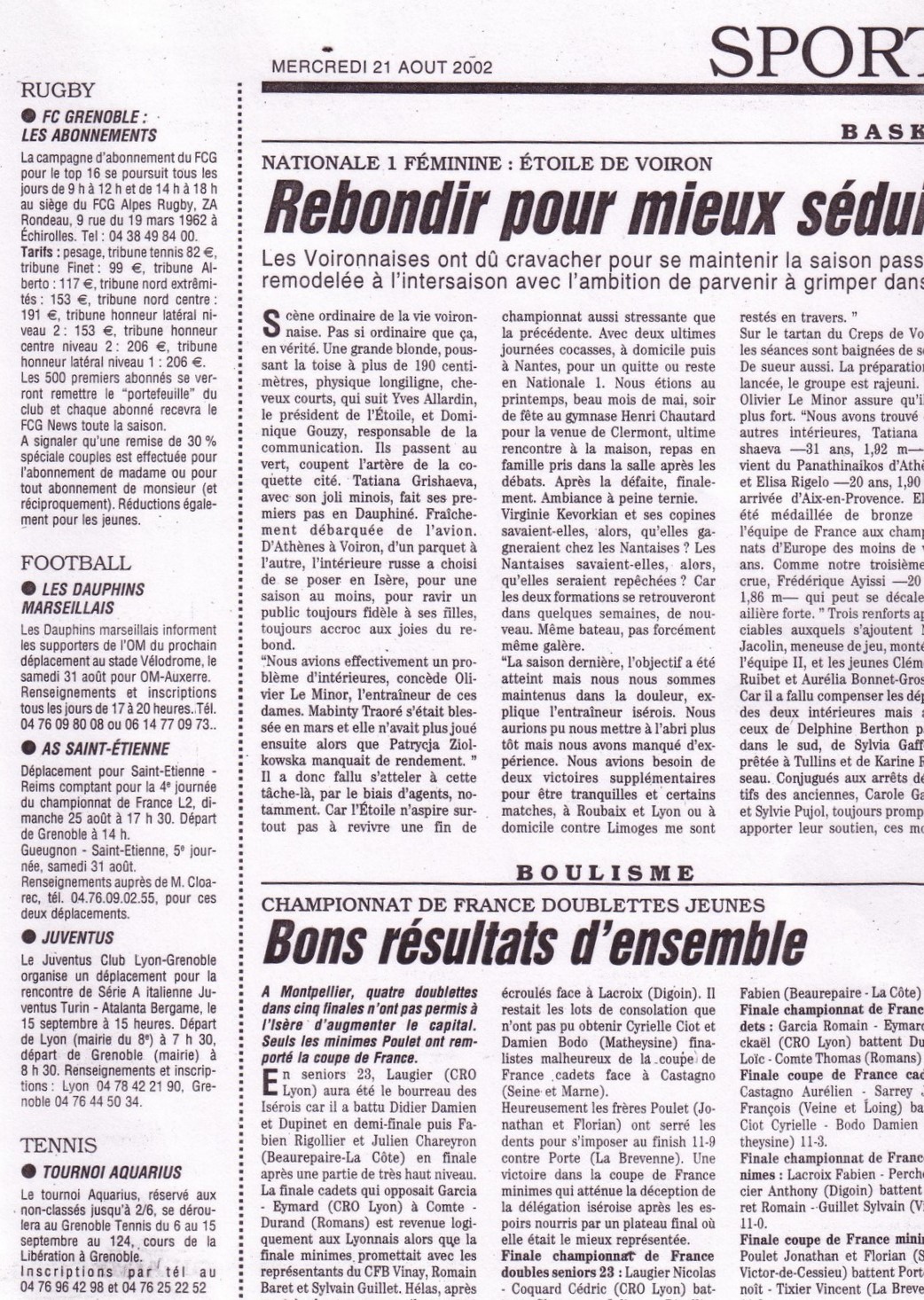 • Résultats sportifs 2002