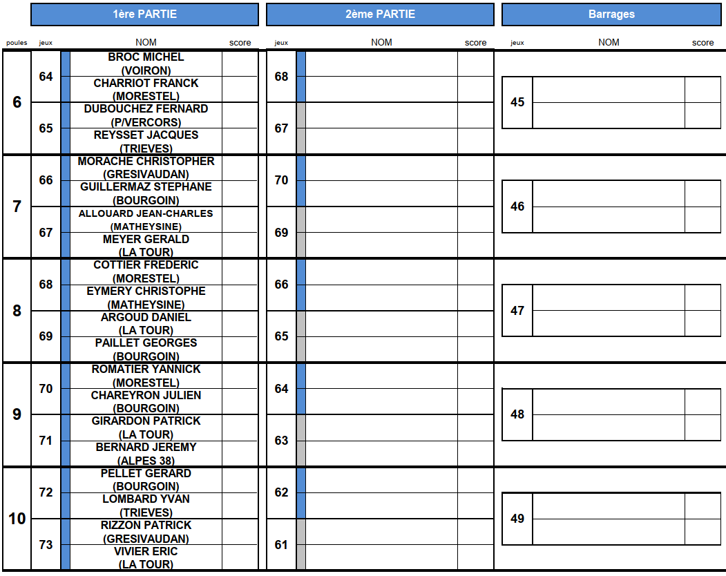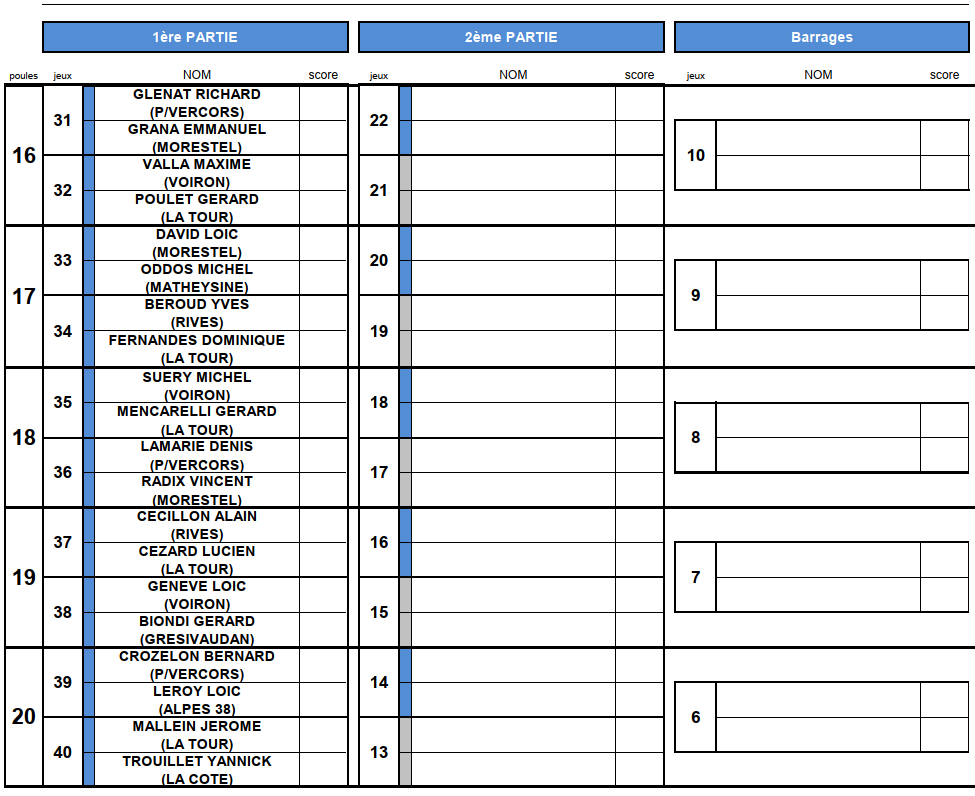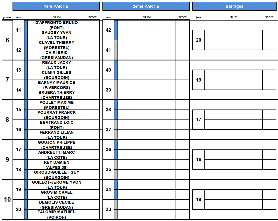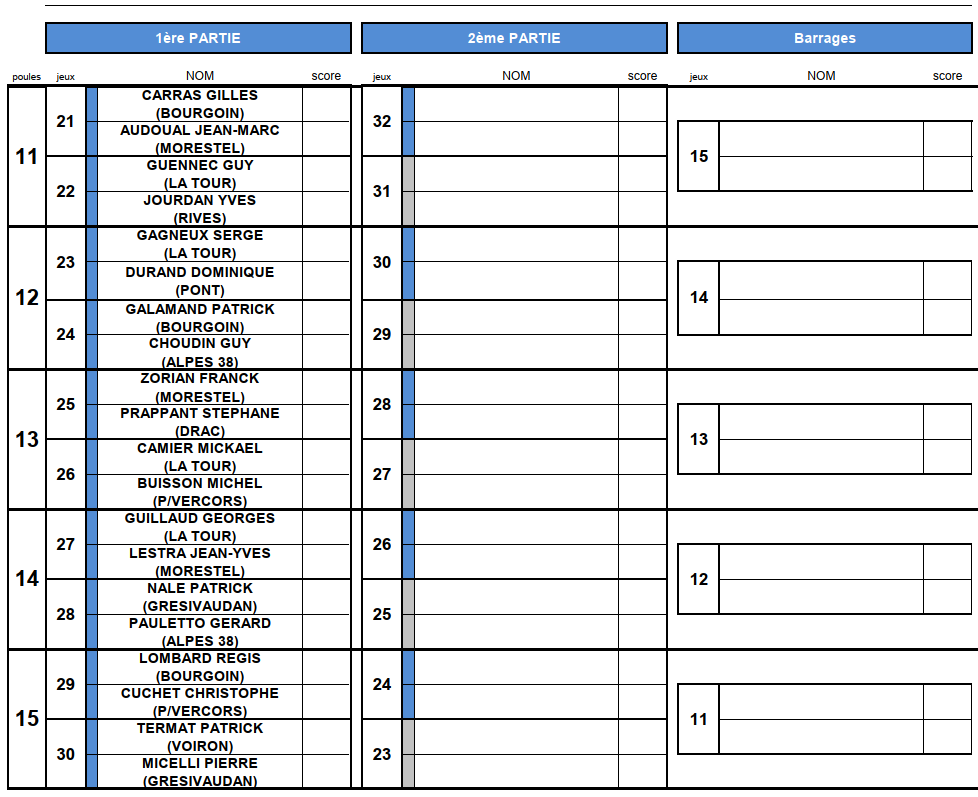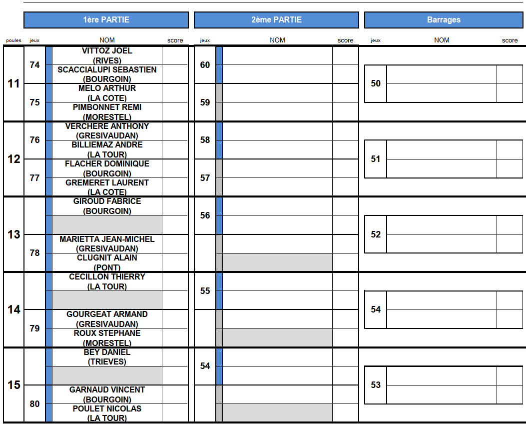 [Fédéral Quadrette / Triple 2025] Les Tirages ! lundi 16 juin 2025, par Fabien Vial F1-2 : 2 équipes qualifiées F3-4 : 5 équipes qualifiées M3 : 3 équipes qualifiées (5 équipes sont déjà qualifiées) M4 : 8 équipes qualifiées
