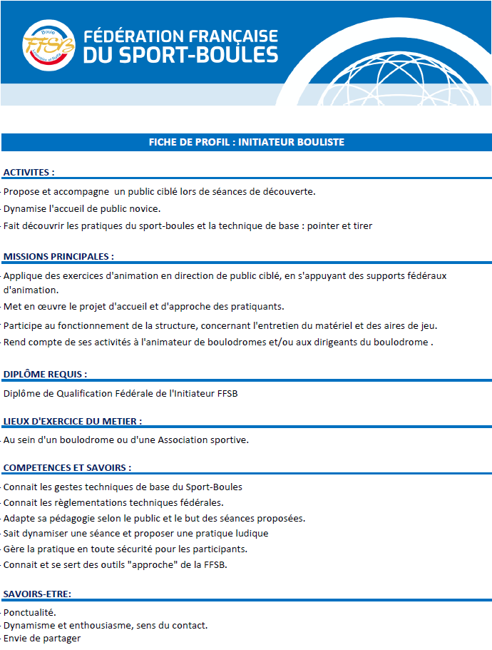 Le Comité Bouliste Départemental de l’Isère organise cette saison une formation d’initiateur bouliste.