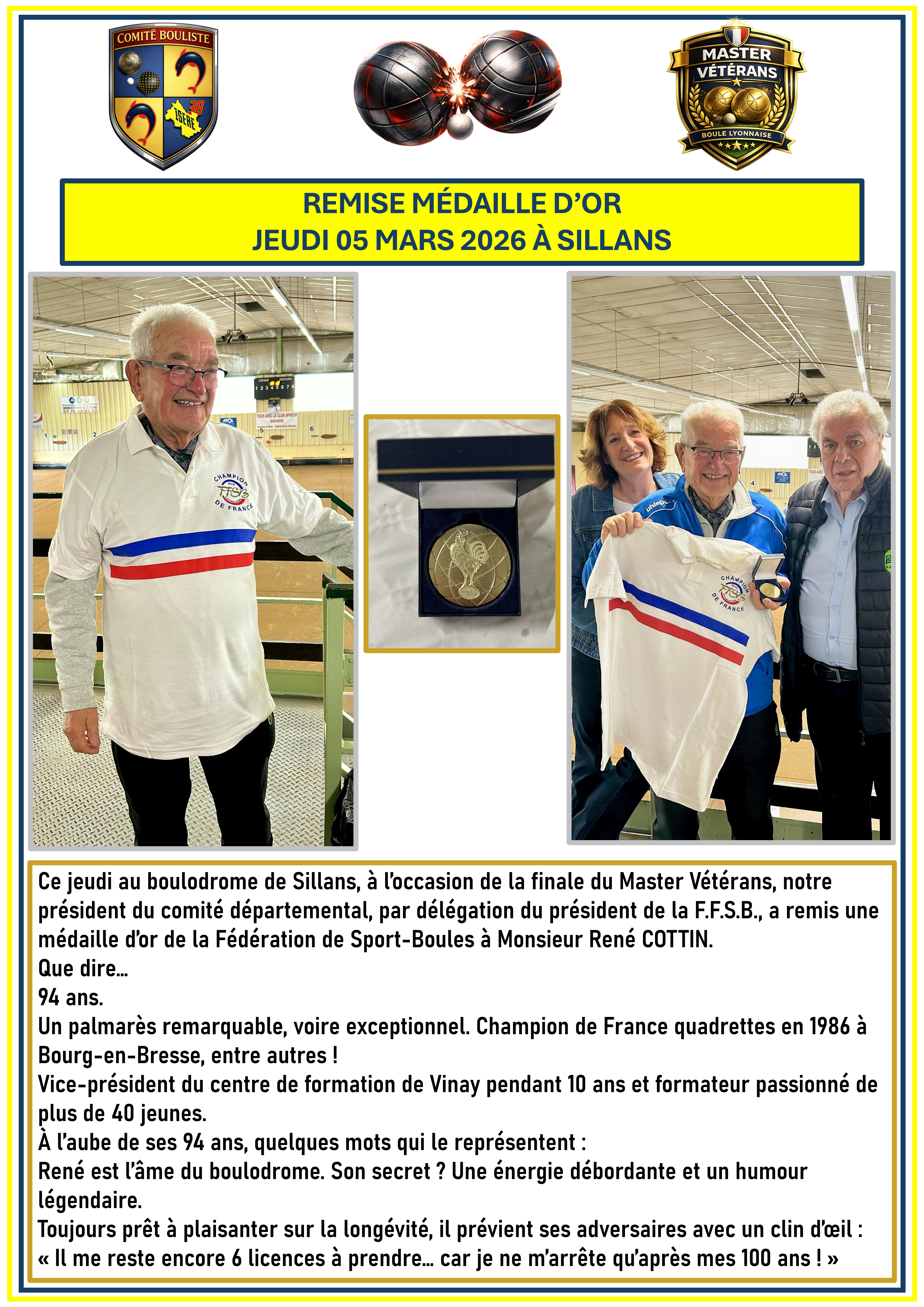 [Remise de la médaille d’or de la F.F.S.B. à René COTTIN]