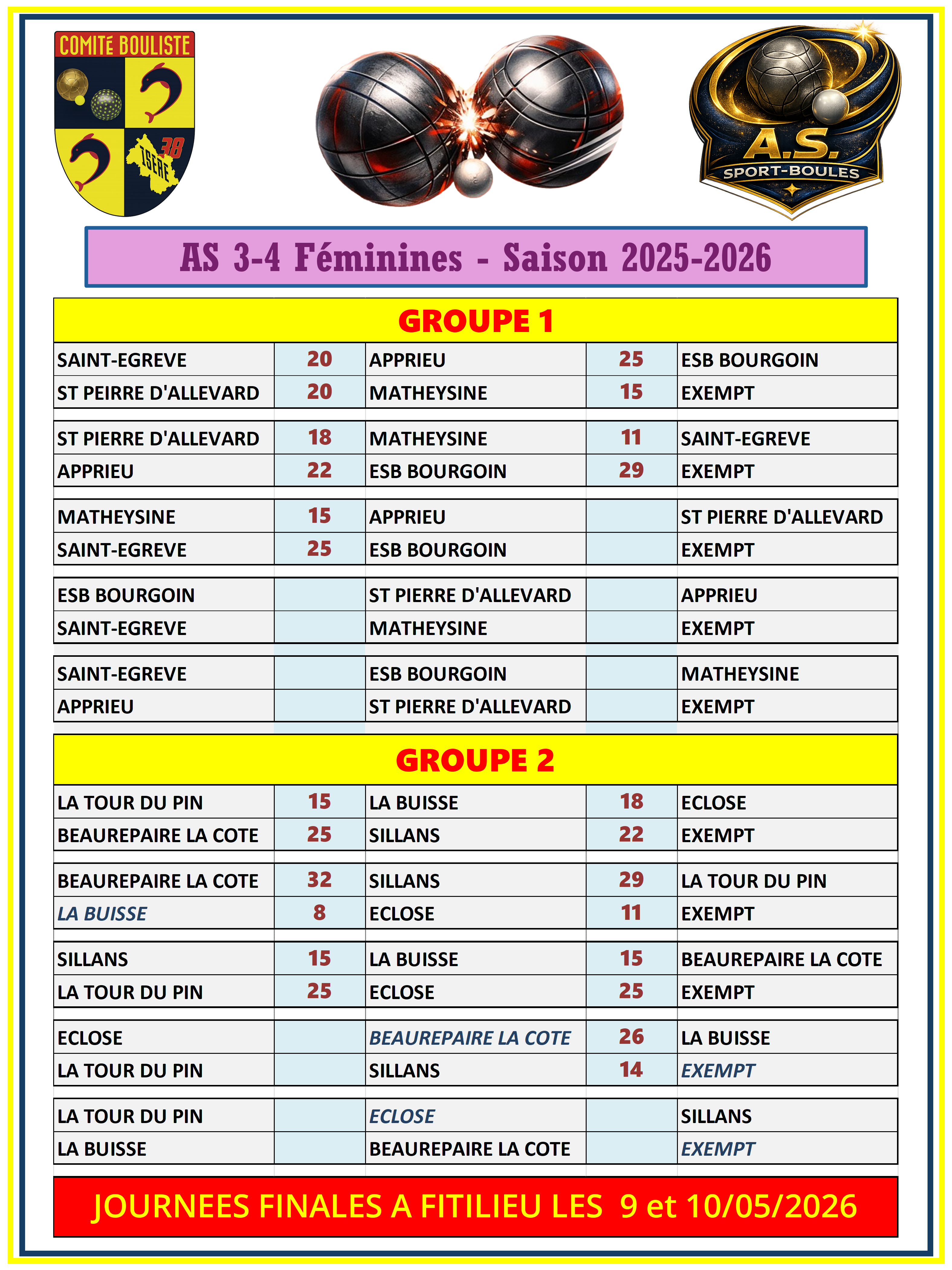 [Résultats et Classement AS Féminin Saison 2025-2026]