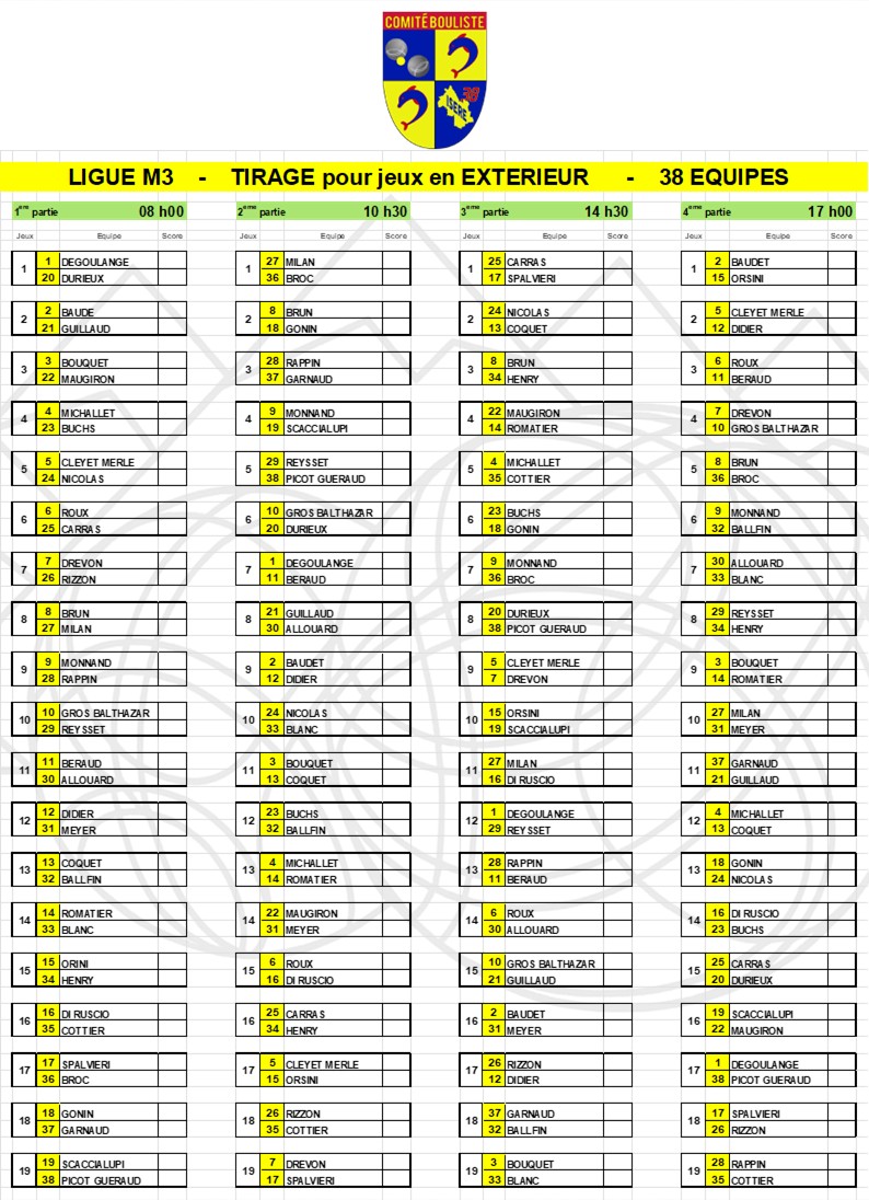 [TIRAGE LIGUE M3] 1ère Journée