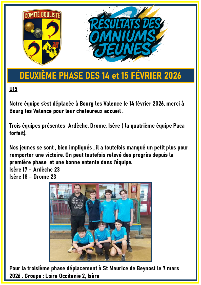 [[Omnium Jeunes U15 - U18 saison 2025 - 2026] 2ème Phase 14 et 15 Février 2026