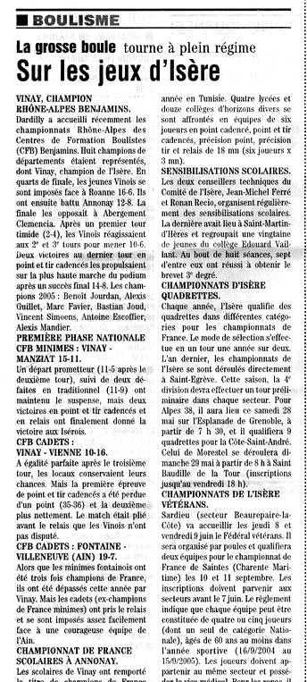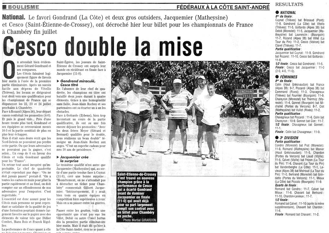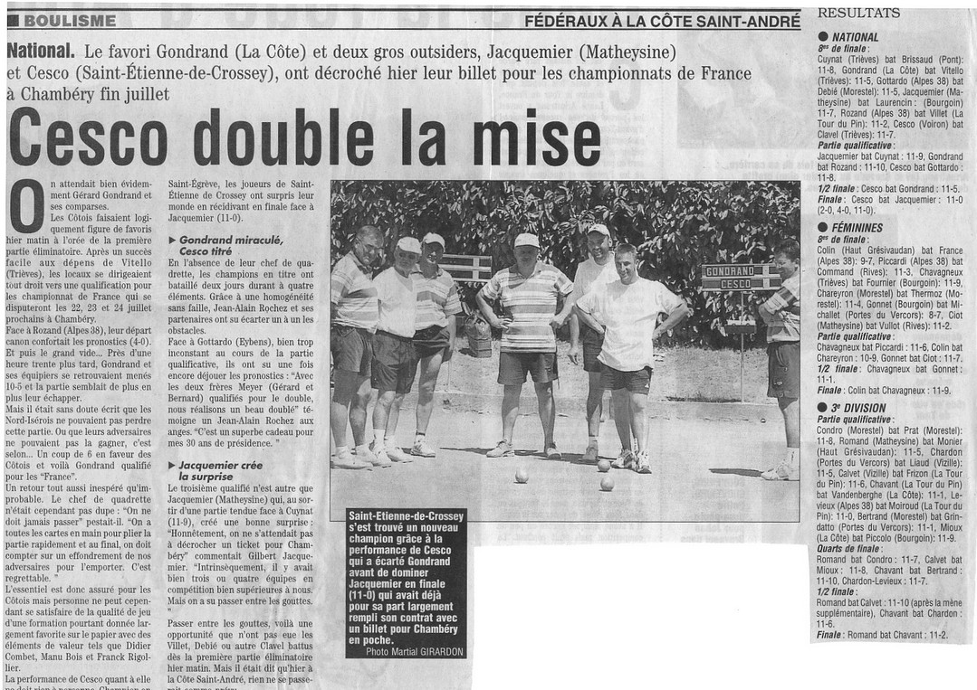 [Championnat de France Doublette] St-Chef le 05 et 06 Juillet