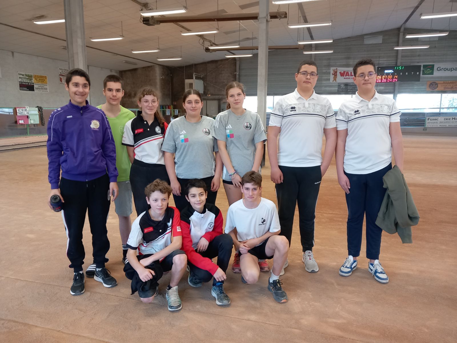 Les U15 ont effectué des oppositions afin de préparer la 1ère phase nationale de l’omnium jeunes qui aura lieu le samedi 18 Janvier au boulodrome de Saint Vulbas.