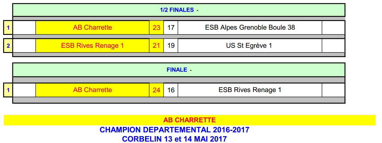 AS 2017 : Voreppe (F3-F4) et Charrette (M3-M4) Champions d’Isère ! lundi 15 mai 2017, par Fabien Vial Tous les résultats dans les fichiers joints.