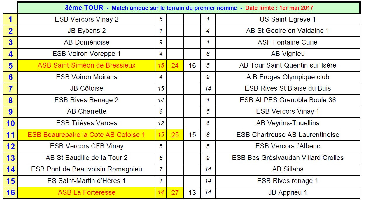 A.S 3 et 4 : résultats du 3ème tour et journée finale à Corbelin.