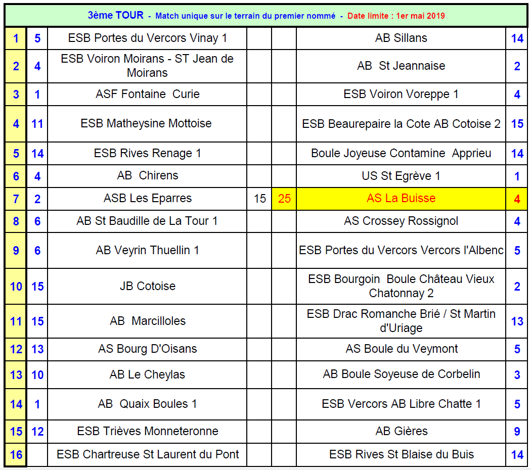 AS M3-M4 2019 : Tirages du cadrage et 3ème tour