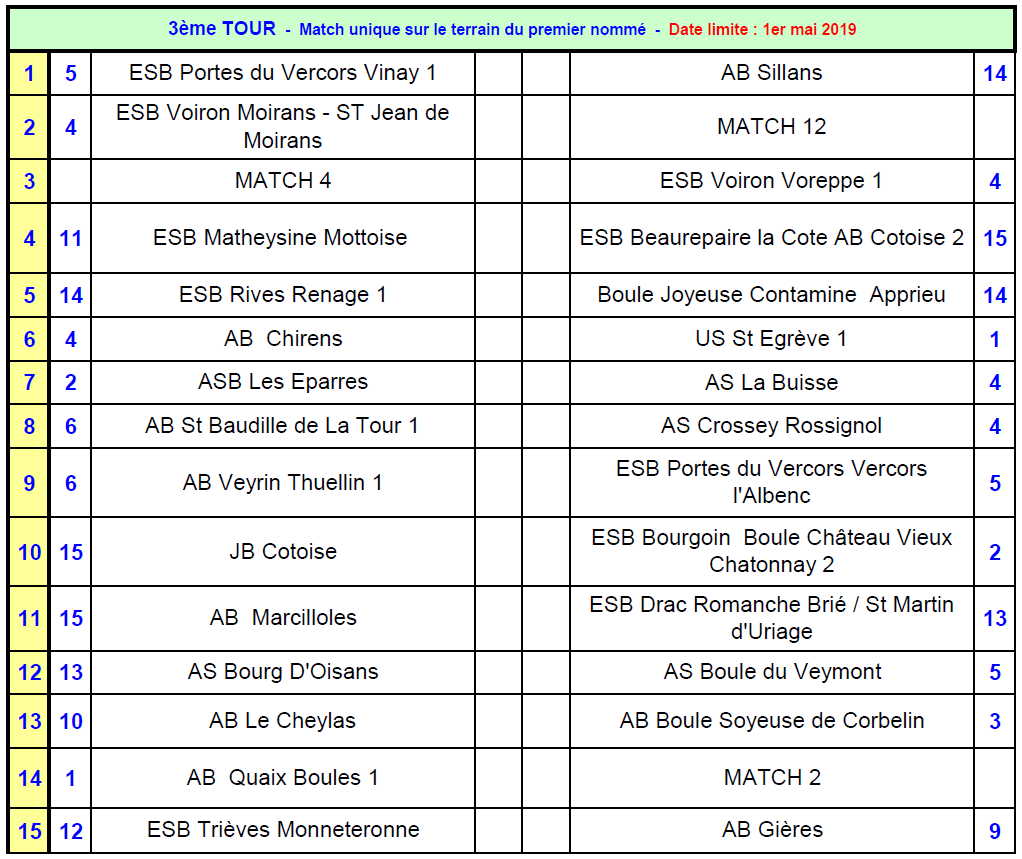 AS M3-M4 2019 : Tirages du cadrage et 3ème tour