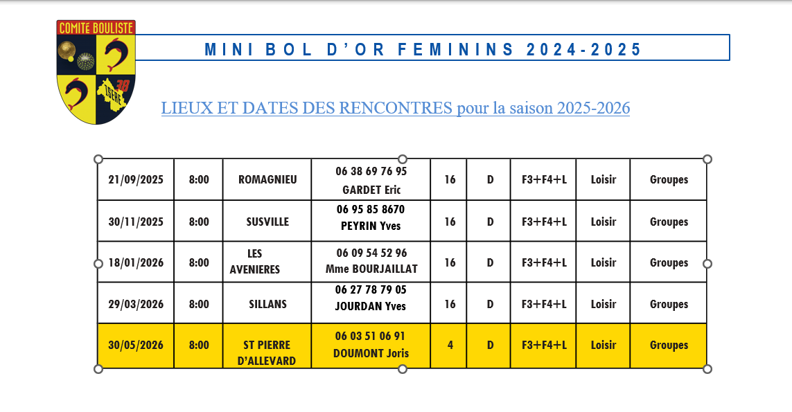 [Mini Bol d’Or Féminin 2024-2025] Les dates de 2024-2025 ! [màj]