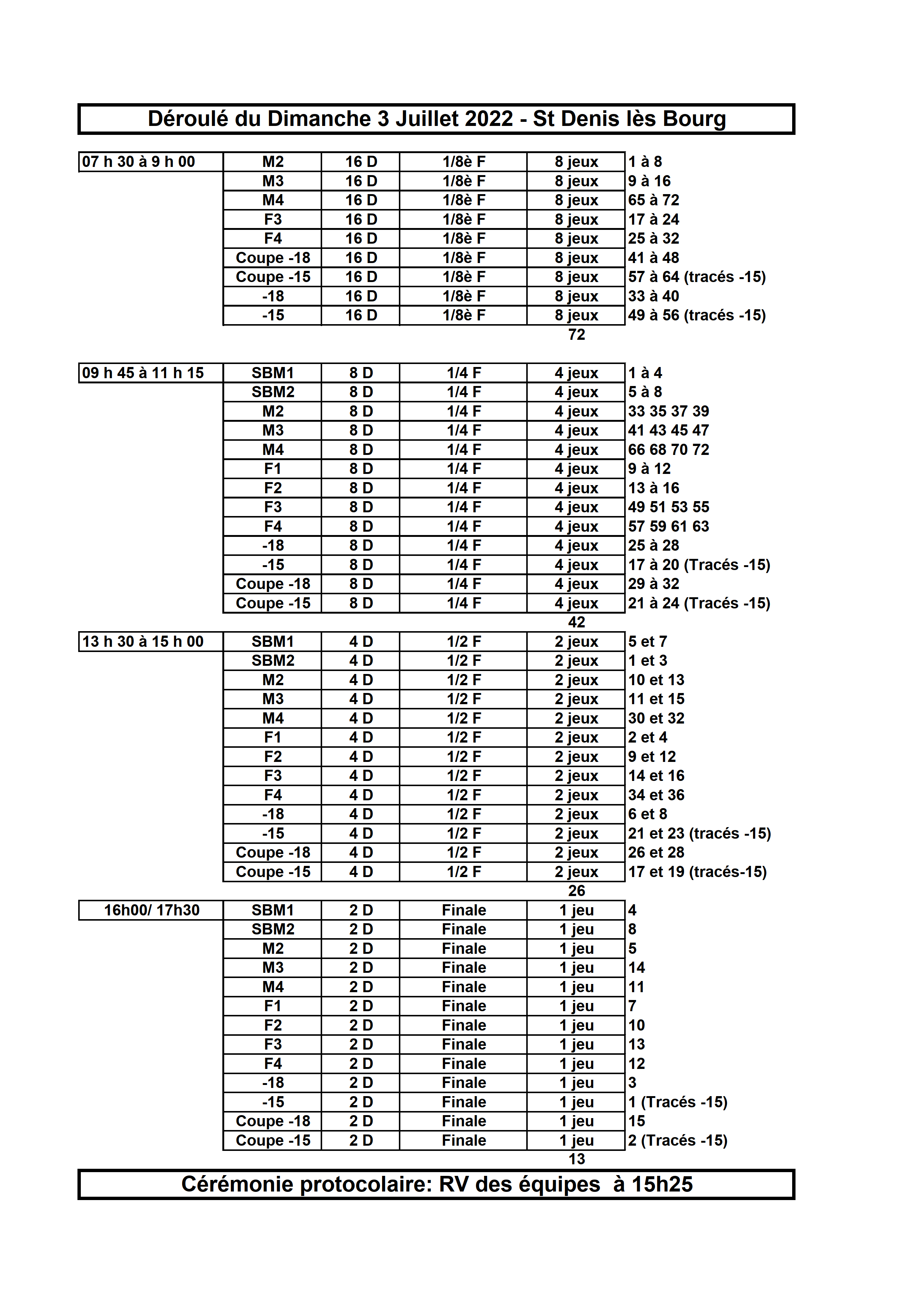 [Championnat de France Doubles 2022 - St Denis les Bourg] Les horaires ! lundi 20 juin 2022, par Fabien Vial