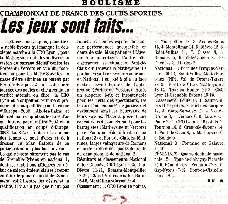 [Championnat de France Doublette] St-Chef le 05 et 06 Juillet