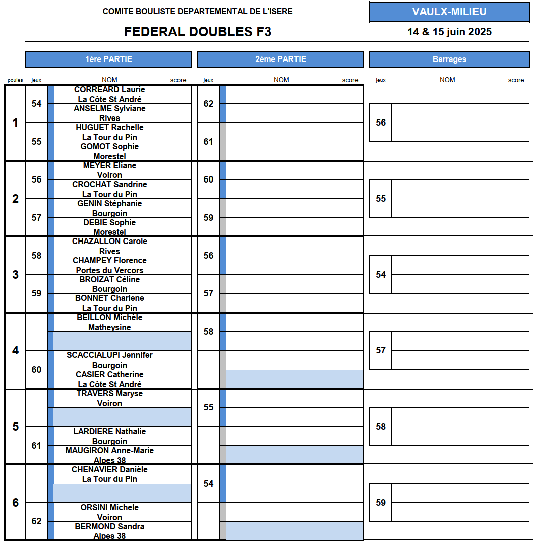 [Fédéral Quadrette / Triple 2025] Les Tirages !
