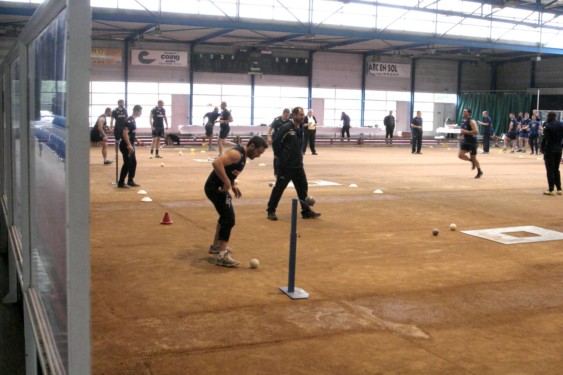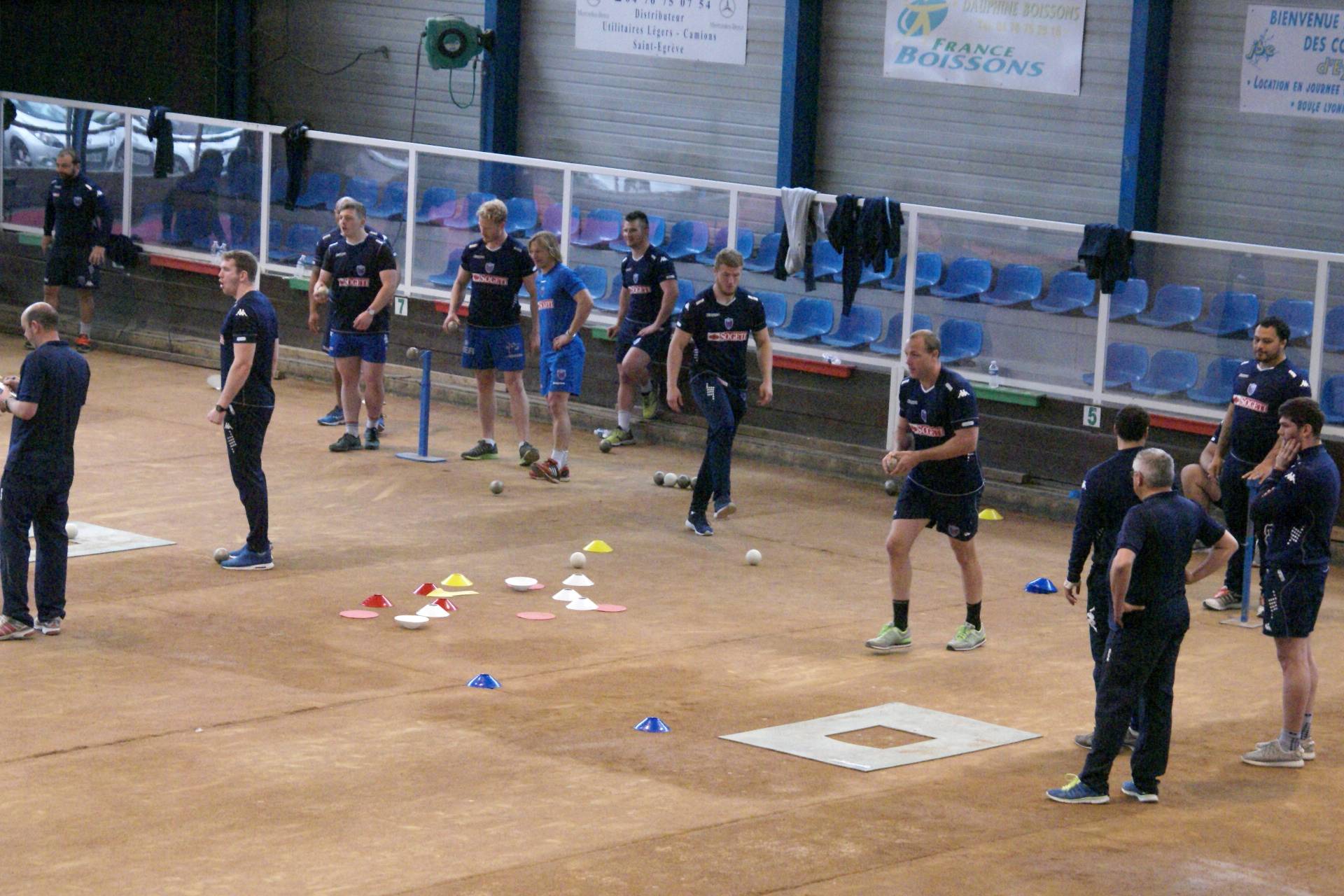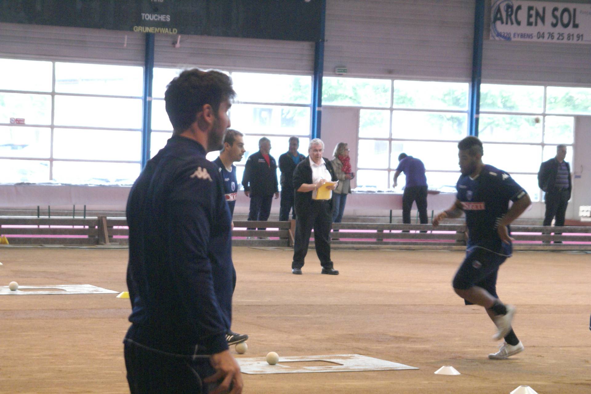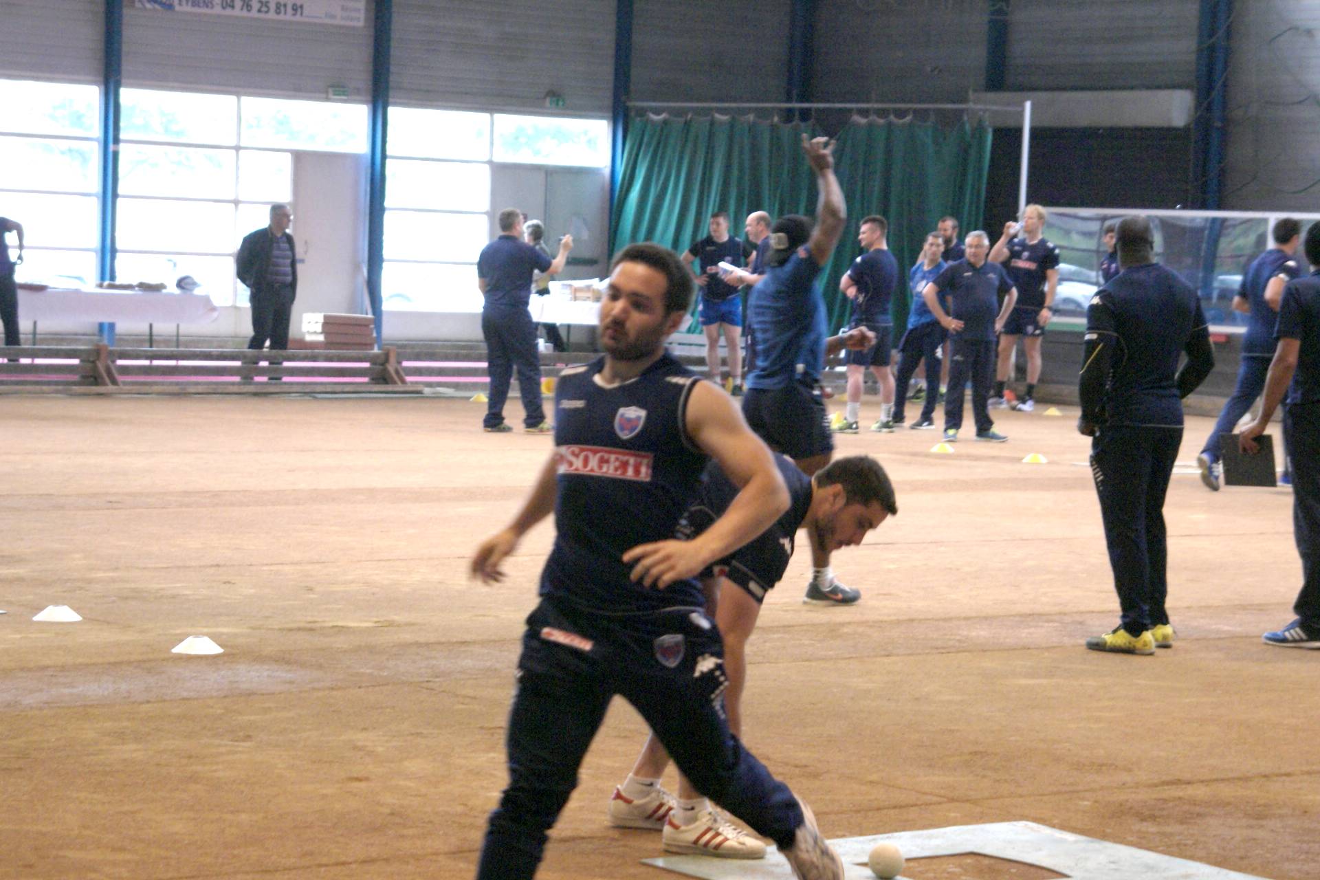 Le club de Rugby de Grenoble a effectué le vendredi 13 mai une sensibilisation à la boule sportive Lyonnaise dans le boulodrome couvert d’Eybens. Une occasion pour le DTN Jacques Faresse, initiateur de cette journée, de faire découvrir ce sport à nos voisins et amis rugbymen. Le coach Fabrice Landreau a motivé ses troupes qui ont transpiré pour domestiquer des grosses boules qui avaient tendance à vouloir éviter la boule blanche. Wisniewski s’est montré le plus adroit, alors qu’Alexandre Dardet a peut-être trouvé ces boules encore un peu trop petites ! Mais tous les joueurs présents, une quarantaine, ont montré de bonnes dispositions pour l’exercice de Tir en Relais et un esprit d’équipe irréprochable, comme le montrent les images et vidéos suivantes. Il ne reste plus qu’à distribuer les licences de boules...