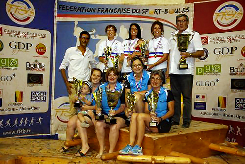 En catégorie F1+F2 c’est léquipe de Fontaine composée des soeurs Maugiron Corinne et Valérie et Bermond Sandra qui s’impose devant Triomphe-Vulpas-Beylier-Venet (Monts de Tarare) 13-6