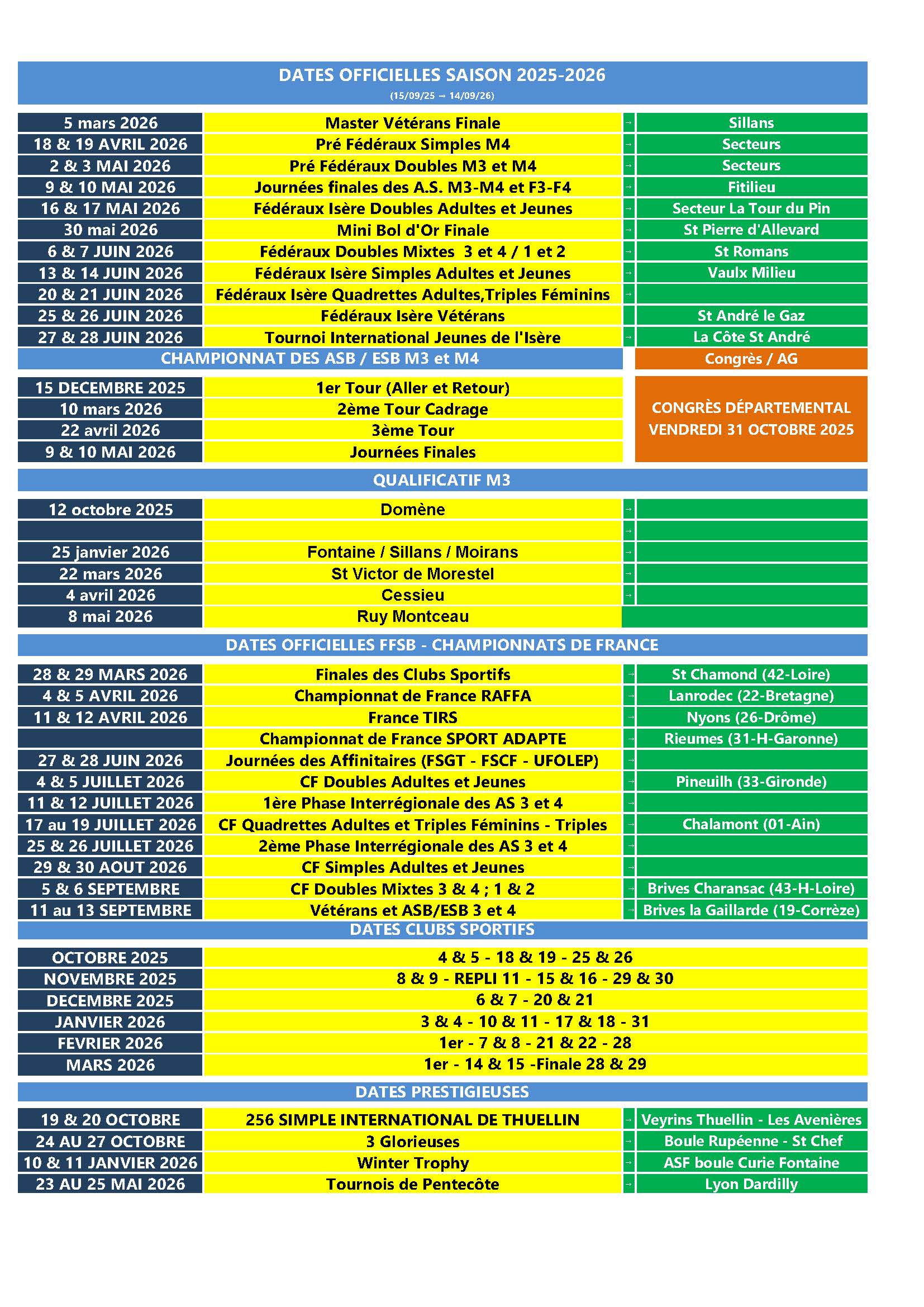 [Mise à jour calendrier des dates officielles 2025-2026] mercredi 24 septembre 2025, par Hervé Moya LES DATES OFFICIELLES SONT MISES A JOUR