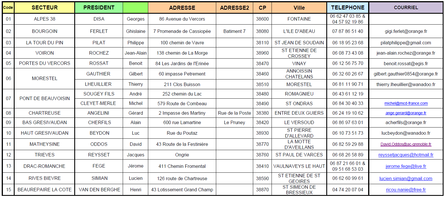 Présidents de Secteur mardi 24 avril 2018, par Fabien Vial, Roland Beauchamp Mise à jour de la liste au 24 avril 2018