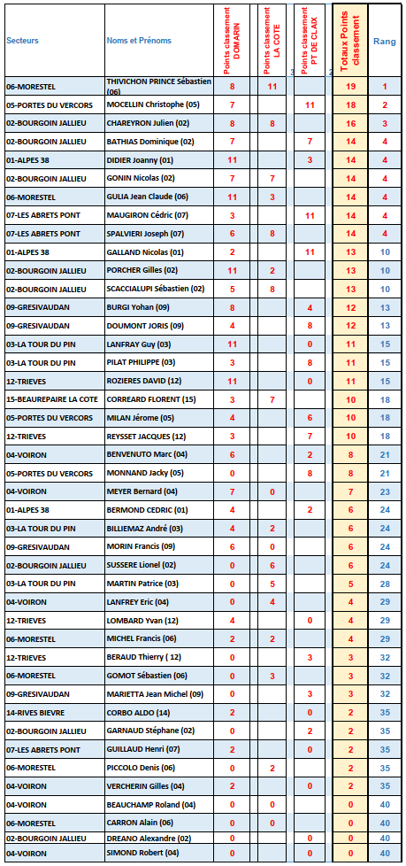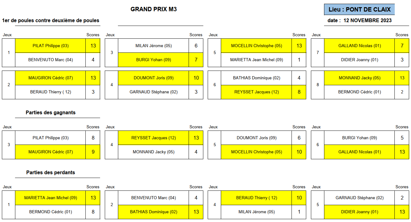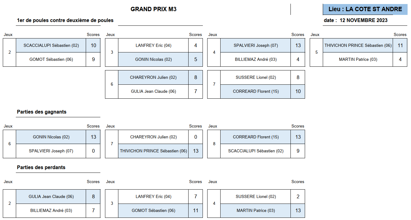 [Qualificatif M3 2023-2024] 2ème étape à La Côte St André et Pont de Claix - Résultats lundi 27 novembre 2023, par Fabien Vial