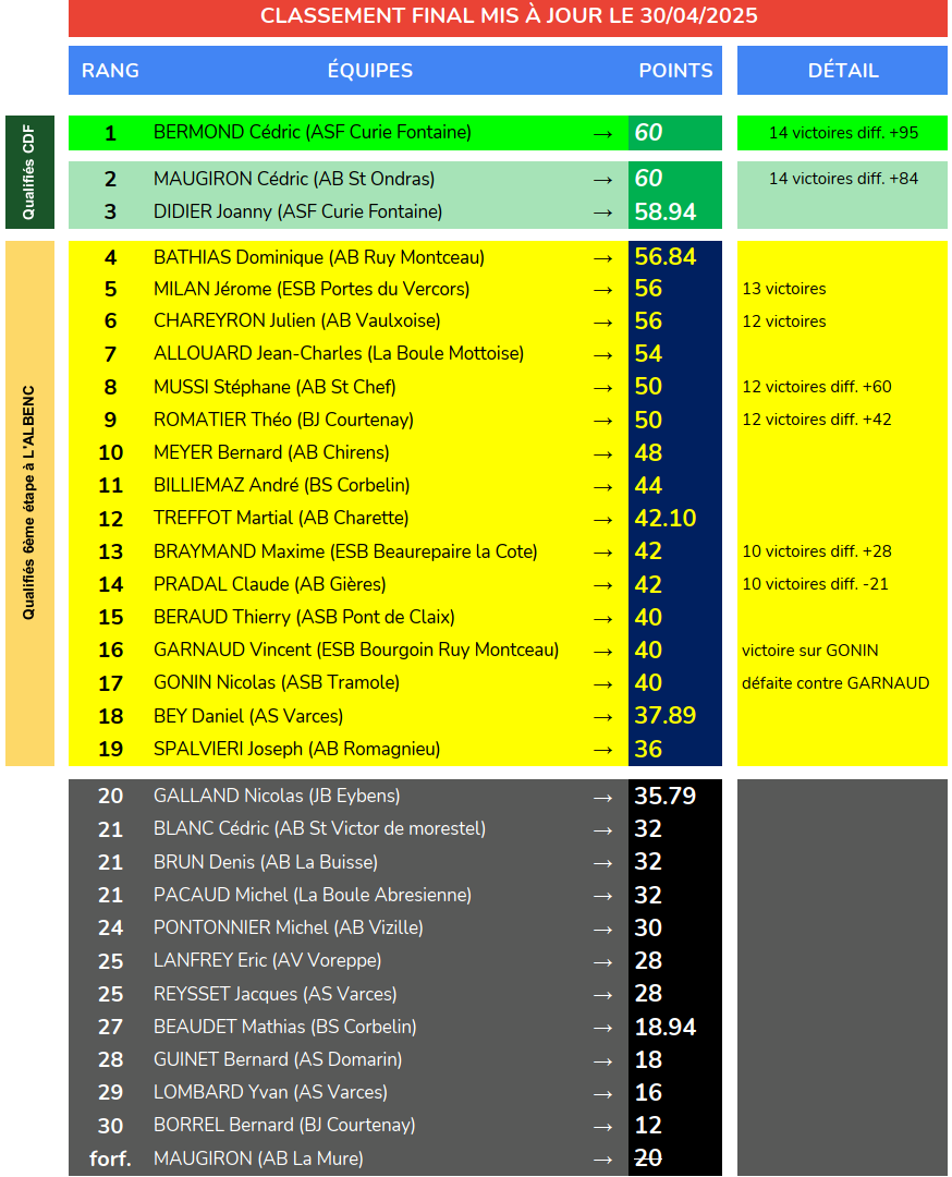 [Qualificatif M3 2024-2025] Résultats 5ème étape à Eybens !