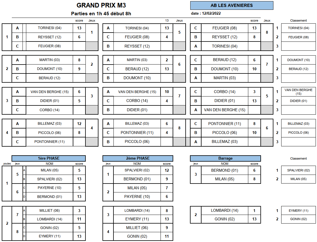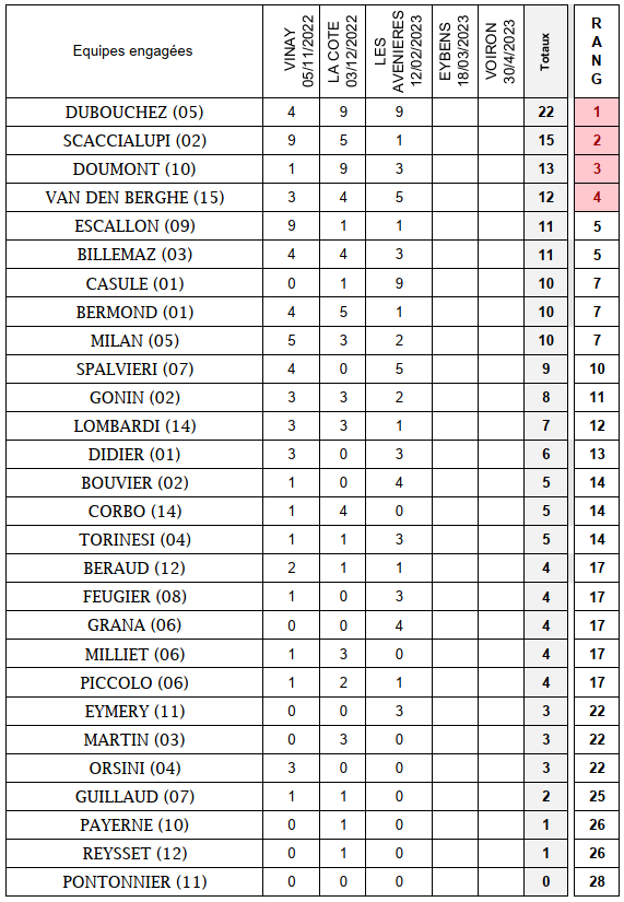 [Qualificatifs M3 2022-2023] 12/02 : 3ème étape aux AVENIÈRES : Les Résultats ! vendredi 17 février 2023, par Fabien Vial
