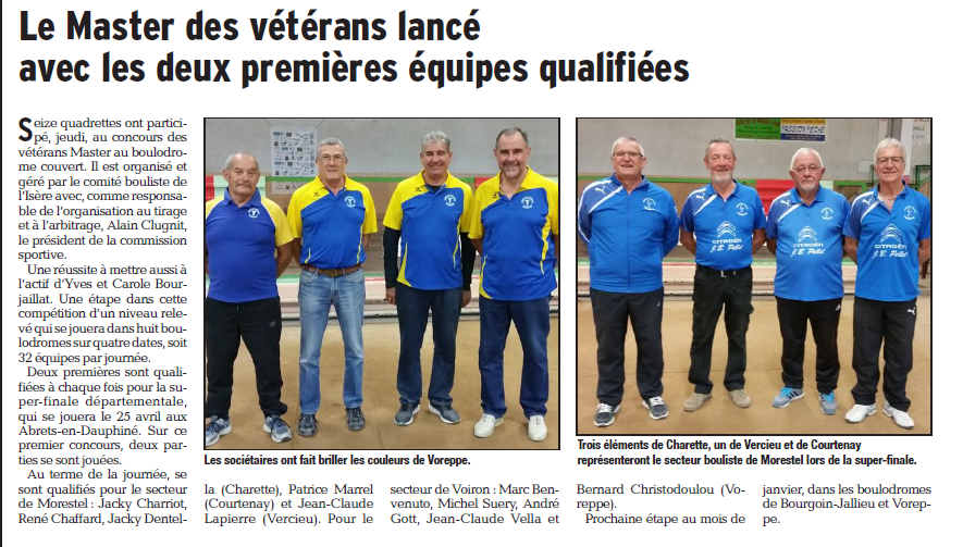 Qualifiés Masters vétérans aux Avenières vendredi 21 octobre 2016, par Fabien Vial BENVENUTO MARC, SUERY MICHEL, GOTTI ANDRE, VELLA JEAN JACQUES, CHRISTODOULOU BERNARD (VOREPPE). CHARRIOT JACKY, CHAFFARD RENE, DENTELLA JACKY, MARREL PATRICE, LAPIERRE JEAN CLAUDE (CHARETTE COURTENAY VERCIEU).