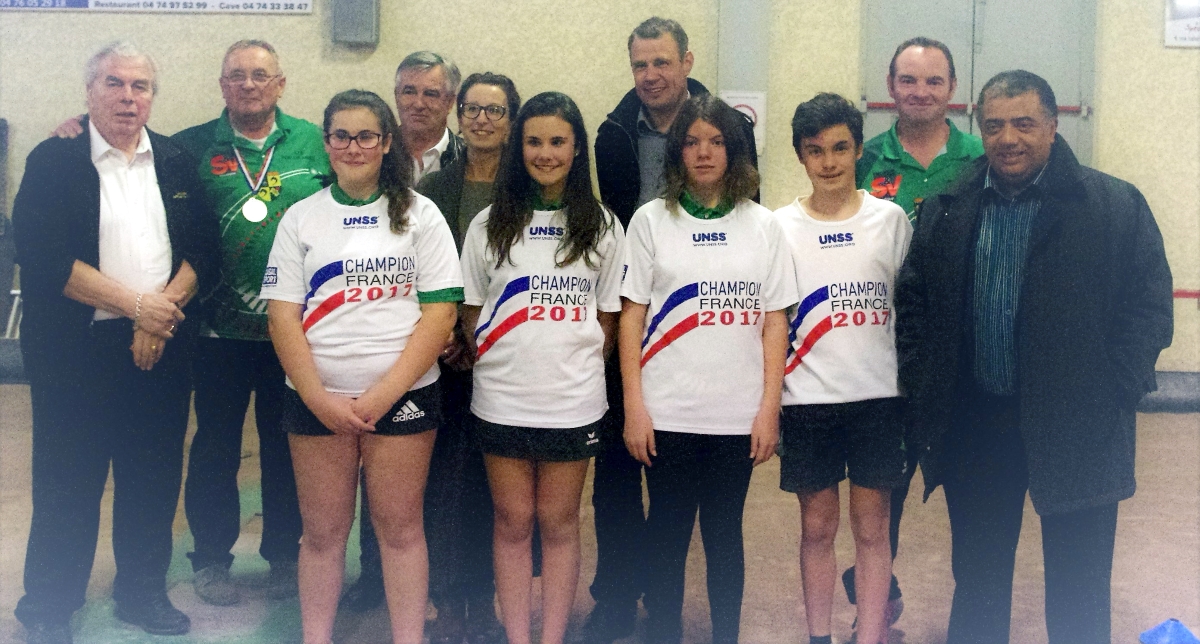 Une fois encore, c’est le sport-boules lyonnaise qui a été mis à l‘honneur sur les jeux du boulodrome des Abrets. À la suite du titre de champion de France UNSS acquis en mai dernier à Tournon sur Rhône par les jeunes du collège Marcel Bouvier, ces derniers ont été invités à une réception à l’initiative du Centre de Formation Bouliste de Pont-Les Abrets. C’est en présence du maire des Abrets en Dauphiné, et de son adjoint aux sports, de Madame BOURGIER principale du collège Marcel Bouvier, et de Michel GENTILE président du comité bouliste de l’Isère, et accompagné de Pierre BARRIAL président des Jeunes au niveau régional, qu’a eu lieu la cérémonie. Après les différents discours retraçant notamment le beau rapprochement entre le CFB et le collège des Abrets, chaque jeune s’est vu remettre la médaille de la ville des Abrets en Dauphiné, et celle du CBD Isère, ainsi que des cadeaux en souvenir de ce titre. A la fin de la cérémonie, tous les jeunes du CFB, accompagnés des officiels, des parents et amis, se sont retrouvés au tour d’un convivial buffet. Encore toutes nos félicitations à ces jeunes et à leurs encadrants, et bonne chance pour les futures échéances à venir.