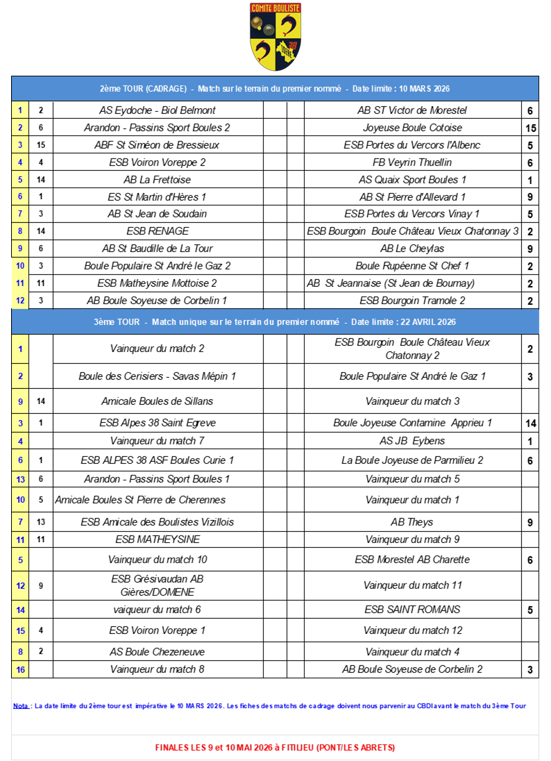 [Fédéral Quadrette / Triple 2025] Les Tirages !